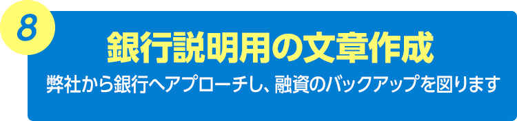 また、融資の際に必要となる煩雑な書類については弊社で作成するため、迅速に融資が受けられます。 -