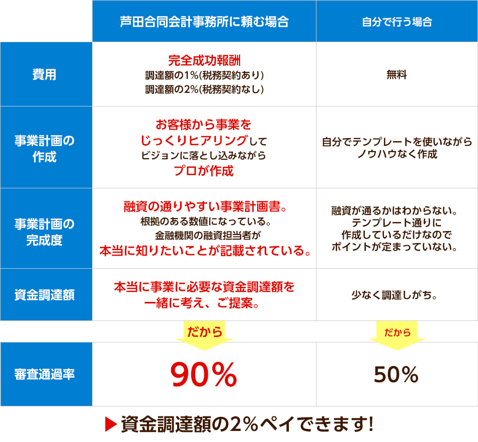 創業融資を含め、年間200件以上の事業計画を作成している芦田合同会計事務所なら、あなたの潜在能力を最大限に引き出した事業計画の作成が可能です!